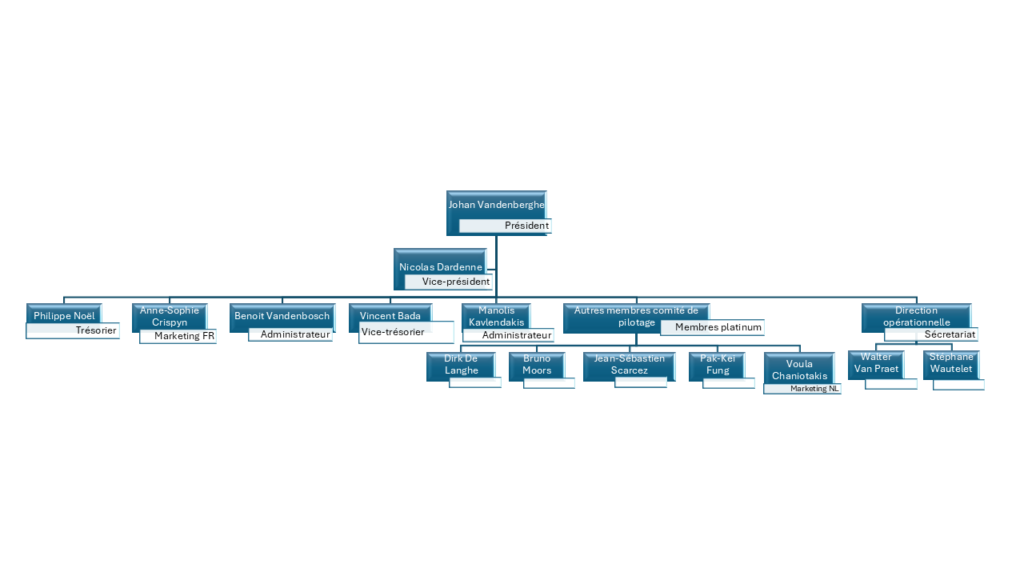 Direction opérationnelle & secrétariat : Fan’s Holding Cy SRL (Stéphane Wautelet)  – W-can Scomm/W-partner SRL (Walter Van Praet)